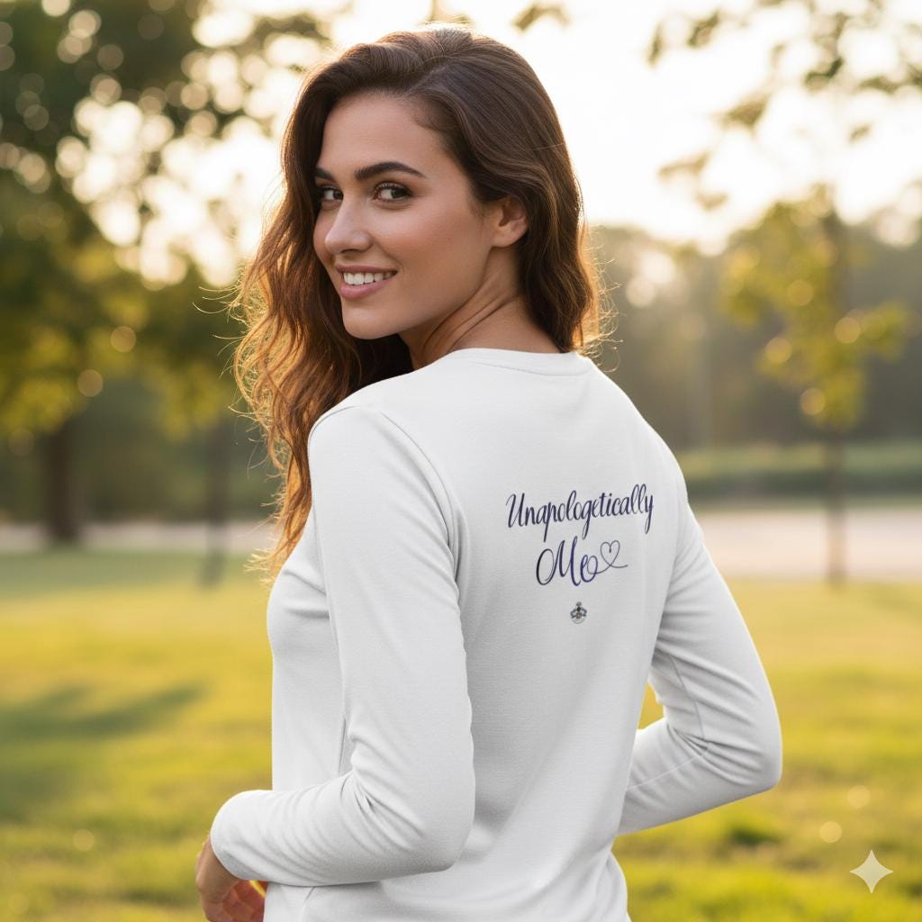 – “Unapologetically Me” script on the back — confident, not loud